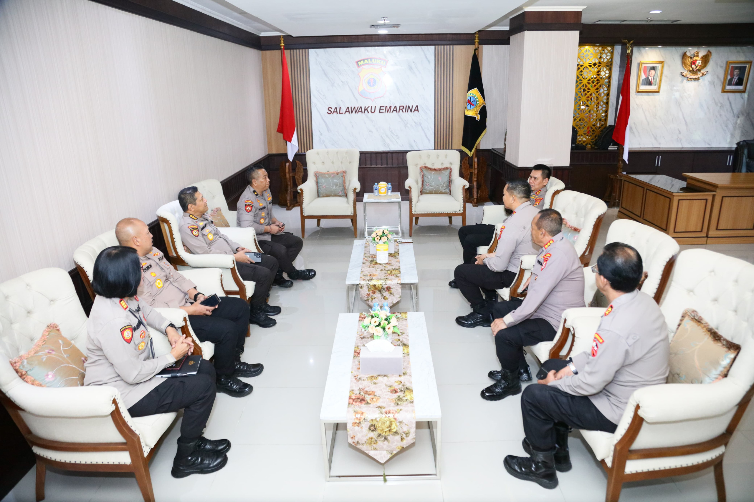 Ambon.gerbangmaluku.com – Kepala Kepolisian Daerah Maluku, Irjen Pol. Prof. Dr. Dadang Hartanto, S.H., S.I.K., M.Si, menerima kunjungan Tim Supervisi Korsabhara Baharkam Polri yang dipimpin Analis Kebijakan Utama Bidang Sabhara Baharkam Polri, Brigjen Pol Dr. Putu Putera Sadana, S.I.K., M.Hum., M.M.