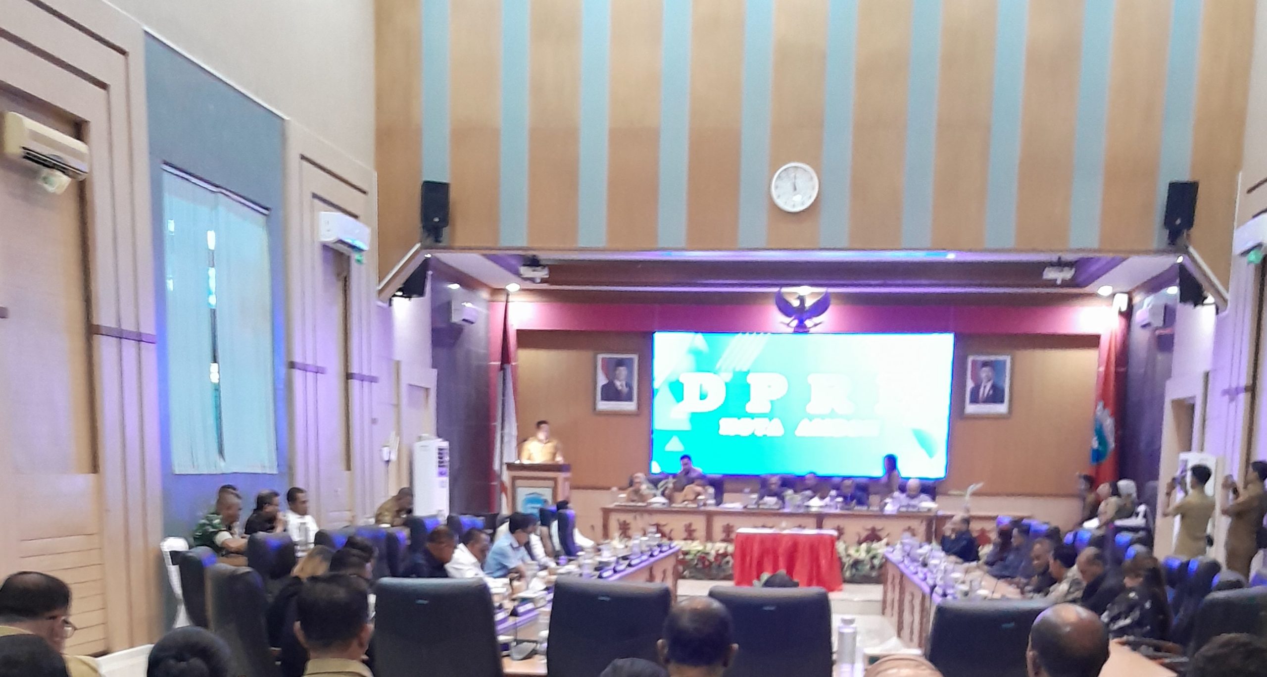 Rapat yang berlangsung di ruang Paripurna DPRD Kota Ambon, Selasa (31/3/2026), dipimpin oleh Wakil Ketua II DPRD Kota Ambon, Gerald Mailoa, dan diawali dengan menyanyikan lagu Indonesia Raya serta Mars Kota Ambon.